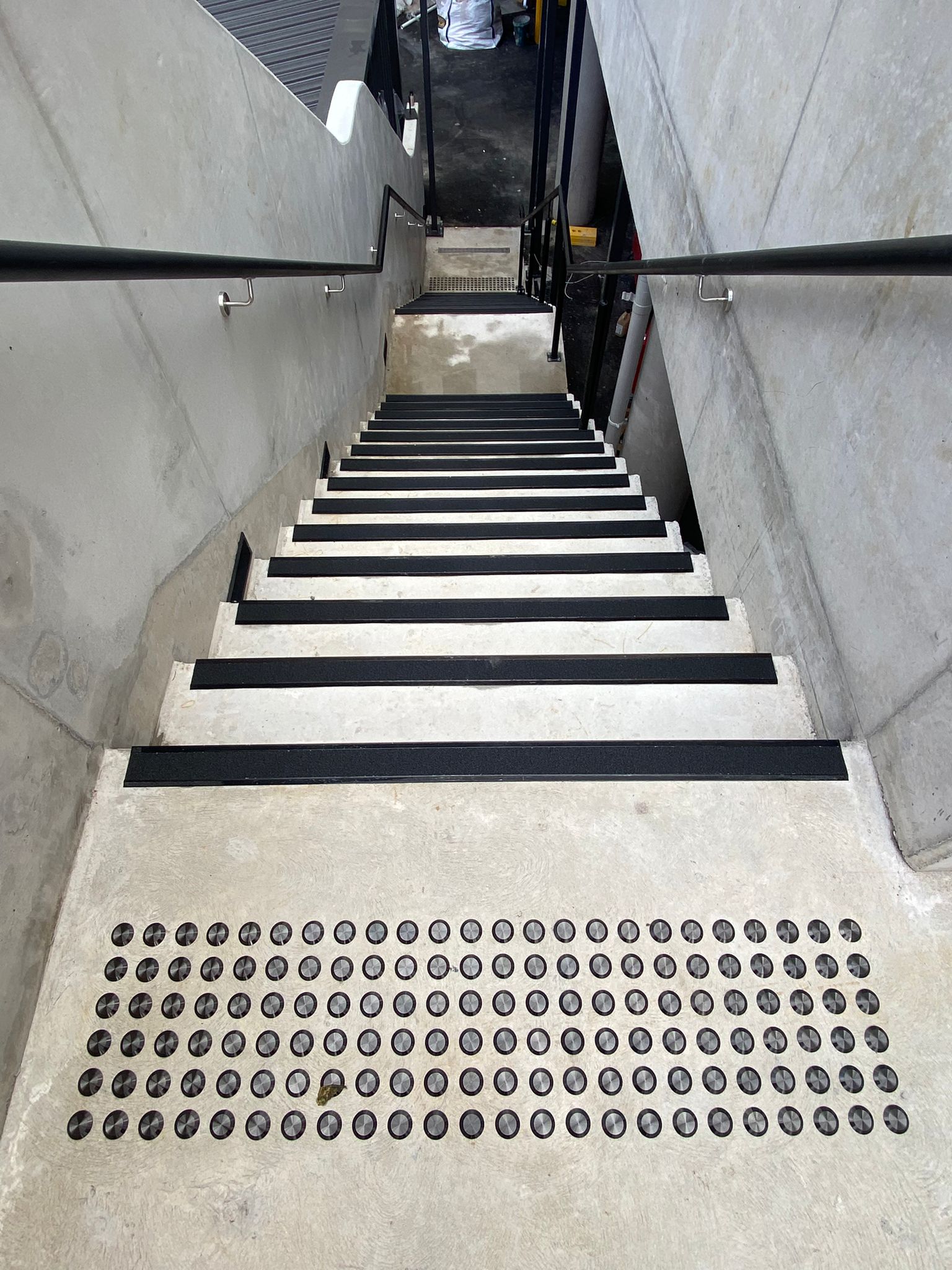 Compliant stair nosing creates clear visual distinction between steps, helping building users — particularly those with vision impairments — navigate stairs safely. The contrast between the nosing and the step surface is mandated under AS 1428.1.