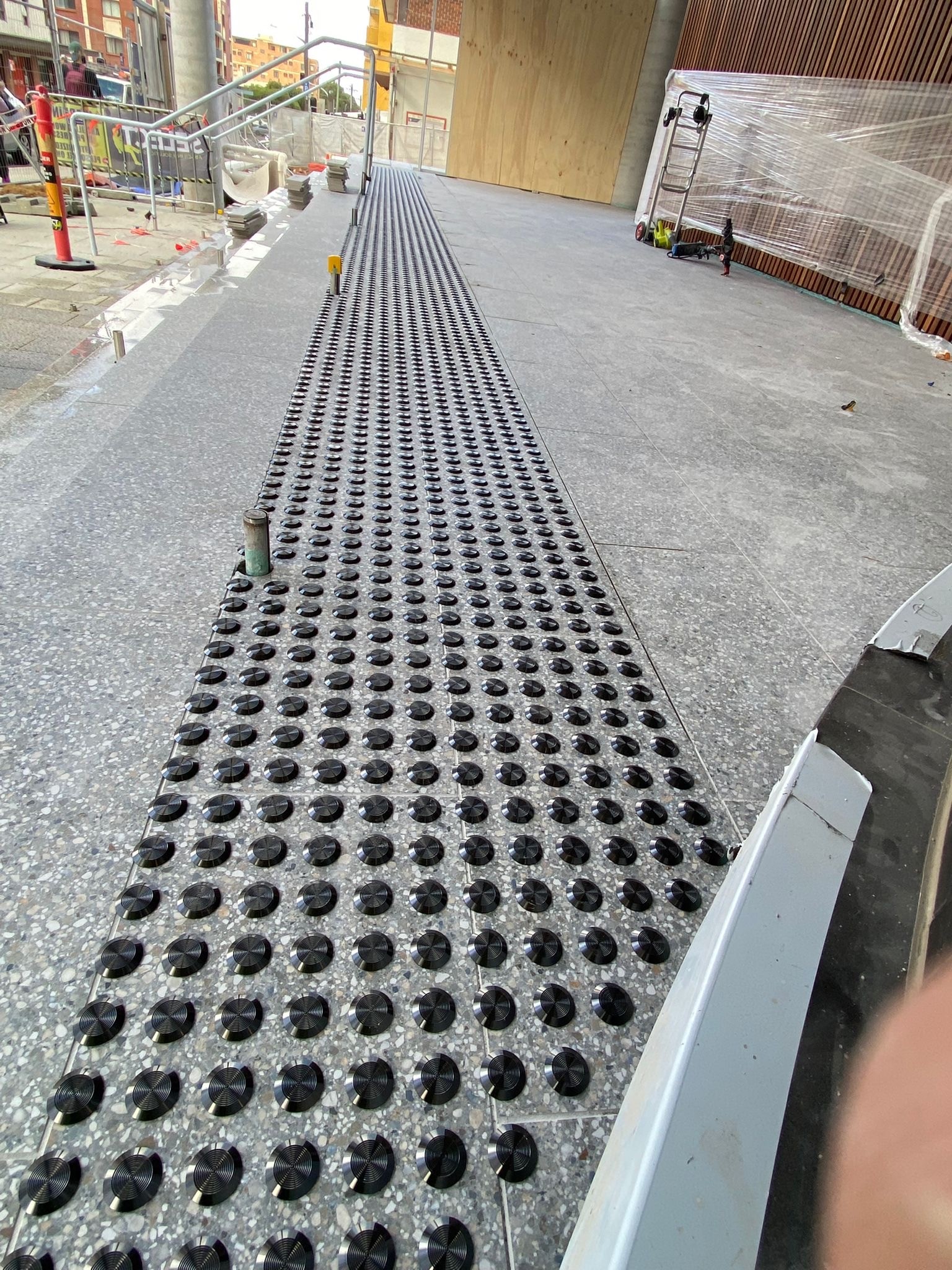 Tactile ground surface indicators (TGSI) designed to meet AS 1428.4 standards. Durable, compliant solutions for commercial, public, and infrastructure projects.